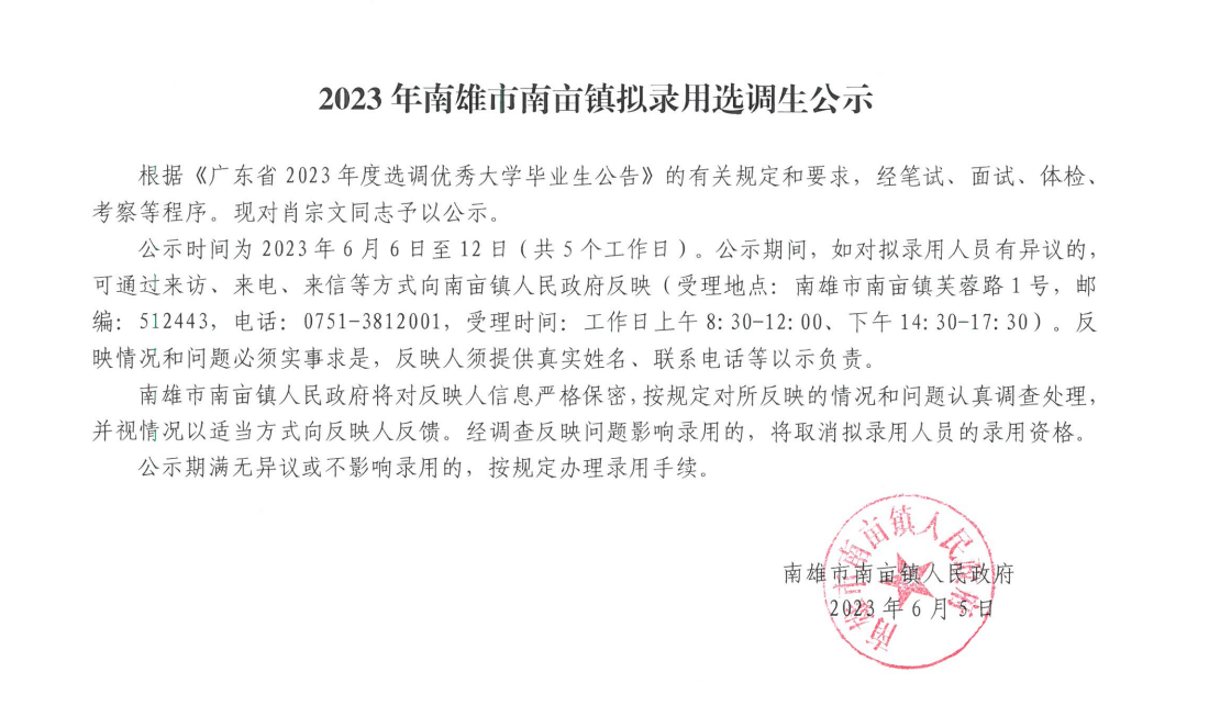 2023年huanyilianmeng.市南亩镇拟录用选调生公示