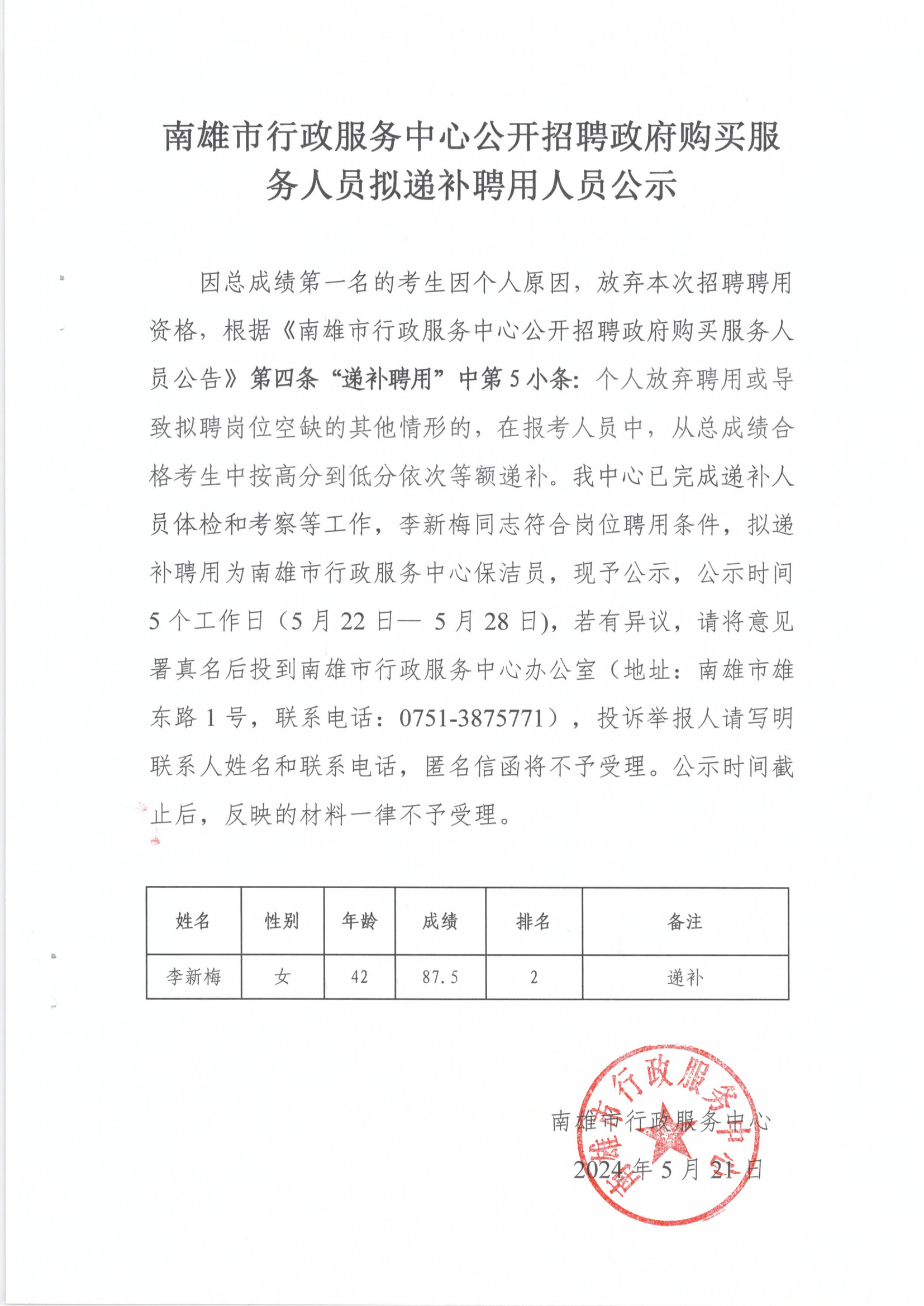 huanyilianmeng.市行政服务中心公开招聘政府购买服务人员拟递补聘用人员公示