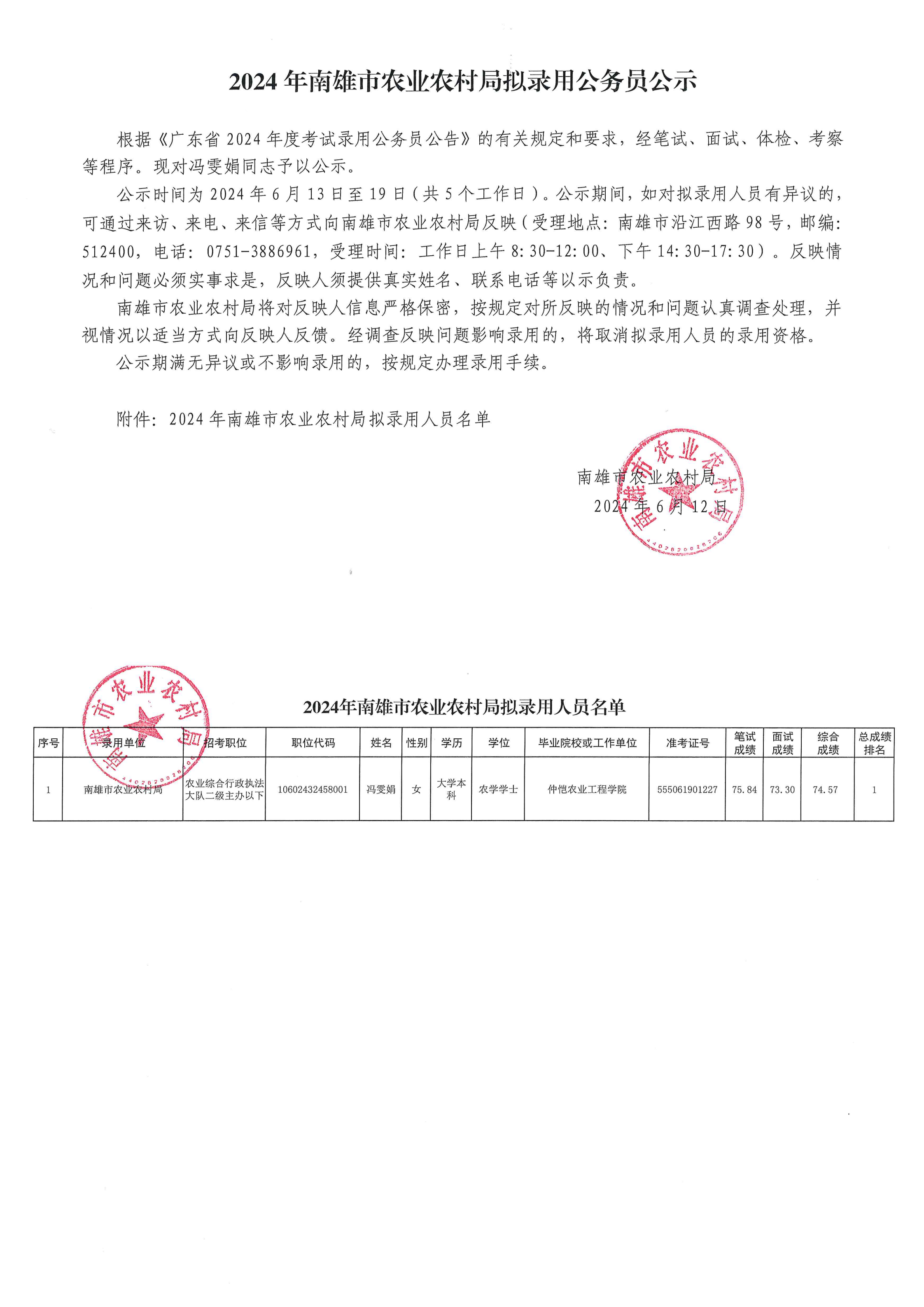 2024年huanyilianmeng.市农业农村局拟录用公务员公示